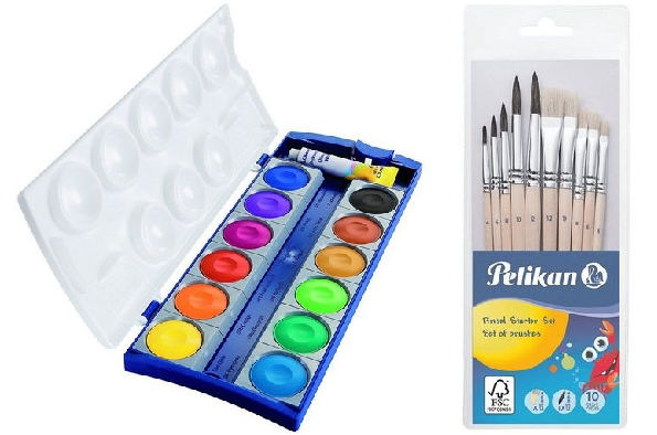 Farbkasten und ein Set von Borsten- und Haarpinsel