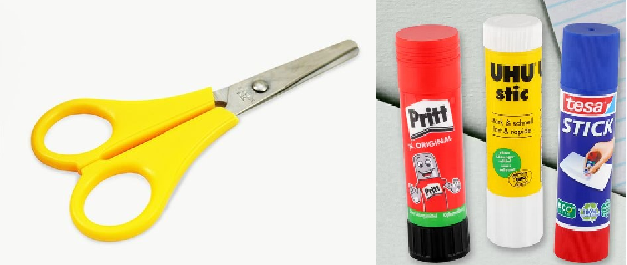 Bastelschere und Klebstift